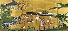 Kunlun is described as having various structures, areas, or significant features either on or around the area of the mountain. The palace of Xiwangmu, sometimes described as having golden ramparts, was located on Kunlun; those blessed to gather there might partake of the fruit of longevity.[21] Often, her palace is described as having a park or garden, bordering a Jasper Pool. Of gardens, a (the) Hanging Garden was referenced early on.