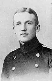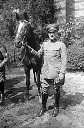 After his appointment as Oberleutnant on 18 October 1909, he was assigned to the Prussian Military Academy, where he met Franz von Papen.[3] Upon graduation on 24 September 1913, he was assigned to the German General Staff where he joined the Railway Department at his own request.[3] He soon became a protégé of his immediate superior, Lieutenant Colonel Wilhelm Groener.[3] Schleicher was promoted to Captain on 18 December 1913.