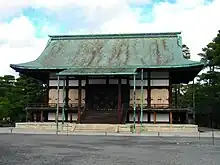 The Kyōto Imperial Palace (京都御所, Kyōto-gosho) is the former palace of the Emperor of Japan, located in Kamigyō-ku, Kyoto, Japan. Since the Meiji Restoration in 1869, the Emperors have resided at the Tokyo Imperial Palace, while the preservation of the Kyoto Imperial Palace was ordered in 1877.[1] Today, the grounds are open to the public, and the Imperial Household Agency hosts public tours of the buildings several times a day.
