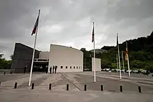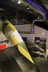 The museum opened in May 1997. Visitors enter and leave through the Ida railway tunnel, though the rails have been removed and the floor levelled. Short branch tunnels lead off on either side; originally used for storage, they now display wartime objects. Headphone stands along the way present multi-lingual accounts of the construction and purpose of the facility. The tour continues along the Mathilde tunnel to reach a lift that has been installed to bring visitors up to the space beneath the dome, where the main exhibition area is located.[41] Focusing on the story of the V-weapons, life in occupied France, and the conquest of space after the war, the tour presents audio-visual displays in English, French, Dutch and German. The museum houses a large number of original artifacts including a V-1 provided by London's Science Museum and a V-2 provided by the Smithsonian Institution,[1] and incorporates a memorial to the 8,000 people who were shot in or deported from the Nord-Pas-de-Calais region during the war; computer terminals track the paths of several hundred of the deportees.[42] In 2011, the museum welcomed 120,000 visitors.[43] In July 2012, the museum opened a planetarium as part of Cerendac, a newly established Centre de ressources numériques pour le développement de l'accès à la connaissance (Resource Centre for the development of digital access to knowledge). The €6 million centre is funded by the Pas-de-Calais department, the Nord-Pas-de-Calais region, the French state, the European Union and the intercommunality of Saint-Omer.[44] Since 2010, the museum has also managed the V-3 site of the Fortress of Mimoyecques.[45]