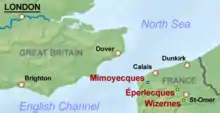 The successful attack against the Watten bunker forced the German Army to find an alternative location for a launch site nearby. They had already taken possession of an old quarry between the villages of Helfaut and Wizernes, south-west of Saint-Omer and some 12 kilometres (7.5 mi) south of the Watten bunker, near the river Aa alongside the Boulogne–Saint-Omer railway line, about 1 km (0.62 mi) from Wizernes station. The quarry had been designated for use as a missile storage depot where V-2s would be housed in tunnels bored into the chalk hillside before being transported for launching.[9] The Germans undertook major work in August 1943 to lay extensive railway sidings to connect the quarry to the main line.[10]