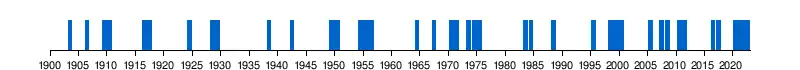 A timeline of all La Niña episodes between 1900 and 2023.[3][4][lower-alpha 1]