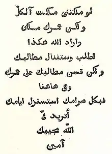 - The full translation in the book is as follows: "Possessing me thou shalt possess all things. / But thy life is mine, for God has so willed it. / Wish, and thy wishes shall be fulfilled; / but measure thy desires, according / to the life that is in thee. / This is thy life, / with each wish I must shrink / even as thy own days. / Wilt thou have me? Take me. / God will hearken unto thee. / So be it!" Balzac, p. 30. ("Amen" may be a more accurate translation of the final line.)