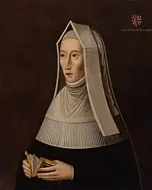The year of her birth is more uncertain. William Dugdale, the 17th-century antiquary, suggested that she had been born in 1441, based on evidence of inquisitions post mortem taken after the death of her father. Dugdale has been followed by a number of Lady Margaret's biographers; however, it is more likely that she was born in 1443, as in May 1443 her father had negotiated with the king concerning the wardship of his unborn child should he die on campaign.[5]