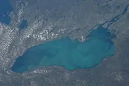 ![]() Lake Ontario seen from the International Space Station on August 24, 2013. The cloudy yellowish substance is algae bloom. | |