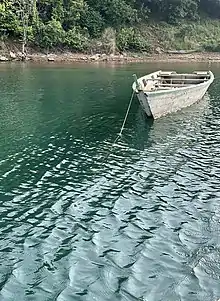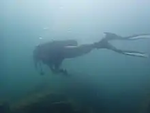 The lake is stratified and seasonal mixing generally does not extend beyond depths of 150 m (490 ft).[14] The mixing mainly occurs as upwellings in the south and is wind-driven, but to a lesser extent, up- and downwellings also occur elsewhere in the lake.[17] As a consequence of the stratification, the deep sections contain "fossil water".[18] This also means it has no oxygen (it is anoxic) in the deeper parts, essentially limiting fish and other aerobic organisms to the upper part. Some geographical variations are seen in this limit, but it is typically at depths around 100 m (330 ft) in the northern part of the lake and 240–250 m (790–820 ft) in the south.[19][20] The oxygen-devoid deepest sections contain high levels of toxic hydrogen sulphide and are essentially lifeless,[6] except for bacteria.[13][21]