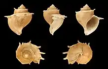 A total of 83 freshwater snail species (65 endemic) and 11 bivalve species (8 endemic) are known from the lake.[69] Among the endemic bivalves are three monotypic genera: Grandidieria burtoni, Pseudospatha tanganyicensis and Brazzaea anceyi.[69] Many of the snails are unusual for species living in freshwater in having noticeably thickened shells and/or distinct sculpture, features more commonly seen in marine snails. They are referred to as thalassoids, which can be translated to "marine-like".[70] All the Tanganyika thalassoids, which are part of Prosobranchia, are endemic to the lake.[70] Initially they were believed to be related to similar marine snails, but they are now known to be unrelated. Their appearance is now believed to be the result of the highly diverse habitats in Lake Tanganyika and evolutionary pressure from snail-eating fish and, in particular, Platythelphusa crabs.[27][70][71] A total of 17 freshwater snail genera are endemic to the lake, such as Hirthia, Lavigeria, Paramelania, Reymondia, Spekia, Stanleya, Tanganyicia and Tiphobia.[70] There are about 30 species of non-thalassoid snails in the lake, but only five of these are endemic, including Ferrissia tanganyicensis and Neothauma tanganyicense.[70] The latter is the largest Tanganyika snail and its shell is often used by small shell-dwelling cichlids.[72]