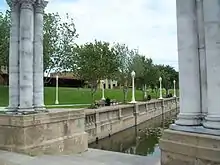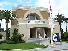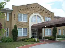 In 1938, Florida Southern College President Ludd Spivey invited architect Frank Lloyd Wright to design a "great education temple in Florida."[22] Wright worked on the project for over 20 years as Spivey found ways to fund it and find construction workers during World War II.[22] Wright's original plan called for 18 structures; in total he designed 30, but only 12 were completed.[23] Wright's textile block motif is used extensively on the campus. The concrete blocks he used are in need of restoration.[24]