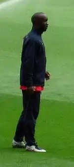 Diarra was selected for the senior team by coach Raymond Domenech for a UEFA Euro 2008 qualifier away to Lithuania on 24 March 2007. He started the match, alongside Claude Makélélé and Jérémy Toulalan in midfield, and played the full 90 minutes.[66] He was also selected that year for a friendly match against Austria on 28 March 2007.[67] Diarra's consistent club performances in 2008 resulted in him being picked for the France squad for Euro 2008, ahead of high-calibre players such as Djibril Cissé and Mathieu Flamini.[29] France was eliminated in the group stage of Euro 2008 and Diarra did not feature in any of his country's three group stage matches.[68][69][70]