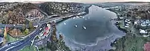 Launceston is at 41°26′31″S 147°8′42″E in the Tamar Valley, Northern Tasmania. The valley was formed by volcanic and glacial forces over 10 million years ago.[26][27] The city is about 45 kilometres (28 mi) south of the Bass Strait, with its closest neighbour-city being Devonport, about 99 kilometres (62 mi) to the north west.[28] Launceston combines steep (originally heavily wooded) ridges and low-lying areas (originally wetlands – with parts of the suburbs of Inveresk and Invermay below high-tide level).[29] As a result, areas of Launceston are subject to landslip problems, while others are liable to poor drainage and periodic flooding. The topography of the area is not conducive to easy dispersion of airborne pollution, due to the phenomenon of thermal inversion.[30]
