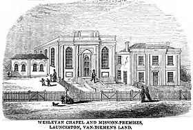 - "Wesleyan Chapel and Mission-Premises, Launceston, Van-Diemen's Island". Wesleyan Juvenile Offering. London: Wesleyan Missionary Society. XII: 66. June 1855. Retrieved 12 November 2015.