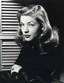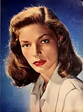 During her screen tests for To Have and Have Not (1944), Bacall was so nervous that, to minimize her quivering, she pressed her chin against her chest, faced the camera and tilted her eyes upward.[30] This effect, which came to be known as "The Look", became another Bacall trademark, along with her sultry voice.[31]