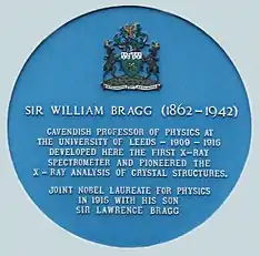 Sir William Lawrence Bragg, CH, OBE, MC, FRS[1] (31 March 1890 – 1 July 1971) was an Australian-born British physicist and X-ray crystallographer, discoverer (1912) of Bragg's law of X-ray diffraction, which is basic for the determination of crystal structure. He was joint recipient (with his father, William Henry Bragg) of the Nobel Prize in Physics in 1915, "For their services in the analysis of crystal structure by means of X-rays";[4] an important step in the development of X-ray crystallography.[5]
