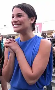 Michele was included on Time's list of the 100 Most Influential People In the World for 2010.[38] In December 2010, she received Billboard's first-ever Triple Threat Award.[39] Several songs performed by Michele on the show were released as singles available for digital download.[40][41] Her cover of The All-American Rejects' song "Gives You Hell" reached the top 40 on the Billboard Hot 100.[42] Michele was featured as lead singer for 14 of the top 20 best-selling Glee cast songs as of 2010.[43] In 2011, she was nominated for two Grammy Awards, for Best Pop Performance by a Duo or Group with Vocals ("Don't Stop Believin'") and Best Compilation Soundtrack Album (Glee: The Music, Volume 1).[44] That same year, Michele was nominated again for the Golden Globe Award for Best Actress – Television Series Musical or Comedy.[45] In 2012 and 2013, she won the People's Choice Award for Favorite TV Comedy Actress.[46]