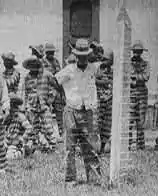 Between 1915 and 1939, Ledbetter served several prison and jail terms in Louisiana for a variety of criminal charges. Thirty years after starting his music career, he was "discovered" in Angola Penitentiary during a 1933 visit by folklorists John Lomax and his son Alan Lomax.[11] They were recording varieties of local music in the South as a project to preserve traditional music for the Library of Congress. This was one of numerous cultural projects during the Great Depression.[12]