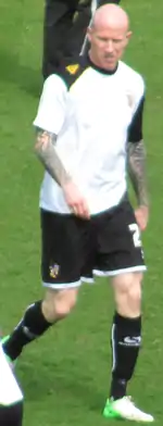 On 23 September 2010, Hughes revealed a 'Boing, Boing' t-shirt in a League Cup tie with Wolverhampton Wanderers at Molineux – the slogan of Wolves' rivals West Bromwich Albion – and was quizzed by police after angry Wolves fans retaliated to the message by attacking Notts County supporters' coaches. He was reported to be "angry" at being named as a substitute in a league game against Milton Keynes Dons on 11 December, though boss Paul Ince stated that "Hughesy is 34 and cannot play week in week out. But he's never come and said 'I should be starting'. He's been different class."[81] On 8 January 2011, he was on the scoresheet as County beat Premier League side Sunderland 2–1 in the FA Cup.[82] Two weeks later he was confirmed to be a target of Sheffield Wednesday.[83] He remained with the "Magpies", and ended the 2010–11 season as the club's top-scorer with 16 goals in 37 appearances.[84] The club again went through a succession of managers – Craig Short, Paul Ince and then Martin Allen – and ended the season three points above the relegation zone.[85][86][87]