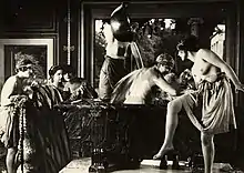 Riefenstahl attended dancing academies and became well known for her self-styled interpretive dancing skills, traveling across Europe with Max Reinhardt in a show funded by Jewish producer Harry Sokal.[16][17] Riefenstahl often made almost 700 ℛ︁ℳ︁ for each performance and was so dedicated to dancing that she gave filmmaking no thought.[17] She began to suffer a series of foot injuries that led to knee surgery that threatened her dancing career.[12] It was while going to a doctor's appointment that she first saw a poster for the 1924 film Mountain of Destiny.[18] She became inspired to go into movie making, and began visiting the cinema to see films and also attended film shows.[12]