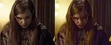 Houdini software was used for much of the film's shots which involved Abby in her vampiric form. Faden noted the techniques used in another challenging shot important to Abby's character in which she begins bleeding when she enters Owen's apartment without invitation. Faden stated, "Normally in such a scene, the character would be shot on set, dressed in blood. But in this case, the timing of the bleeding was so dependent on the emotional beats of the scene that this technique wouldn't have allowed us enough control."[37] Actress Chloë Grace Moretz was first shot with minimal prosthetic blood applied to her face for reference. Then using techniques utilized in a prior Method Studios film, A Nightmare on Elm Street, Faden had the Houdini software track Moretz's shaking movements and render the gradual release of blood from her face.[38]