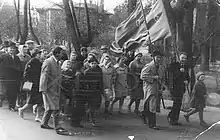 In Libau, a coup organized by Germans took place on 16 April 1919 and Ulmanis government was forced to flee and was replaced by Andrievs Niedra.[21] The Ulmanis government found shelter on the steamship "Saratov" in Libau port. In May a British cruiser squadron arrived at Libau to support Latvian independence and requested the Germans to leave.[22]