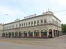 In 1857 an Imperial Decree provided for a new railway to Libau.[14] That year the engineer Jan Heidatel developed a project to reconstruct the port. In 1861–1868 the project was realized – including the building of a lighthouse and breakwaters. Between 1877 and 1882 the political and literary weekly newspaper Liepājas Pastnieks was published – the first Latvian language newspaper in Libau.[15] In the 1870s the further rapid development of Russian railways, especially the 1871 opening of the Libava-Kaunas and the 1876 Liepāja–Romny Railways, ensured that a large proportion of central Russian trade passed through Libau.[16] By 1900, 7% of Russian exports were passing through Libau. The city became a major port of the Russian Empire on the Baltic Sea, as well as a popular resort. During this time of economic expansion, the city architect Paul Max Bertschy provided the design for many of the city's both public and private buildings, making an imprint on the architecture which can still be seen today.[17]