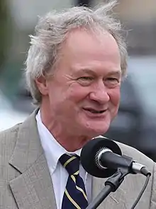 Known for often disagreeing with the Republican Party leadership, Chafee says he did not cast his ballot for President George W. Bush in the 2004 election, instead choosing to write in former president George H. W. Bush as a nod to the Republican Party of his father.[15] Chafee frequently criticized the younger Bush's record on the environment, and expressed concern about the 2004 Republican platform and overall philosophical direction of the party. He described the younger Bush's presidency as "an agenda of energizing the far-right-wing base, which is divisive."[16] Soon thereafter, he rejected Democratic overtures to leave the Republican Party after appeals to him from other Republican senators to remain in their caucus.[17] Chafee considered challenging George W. Bush for re-nomination in the New Hampshire primary in 2004 on an anti- (Iraq and Afghanistan) war platform. In his autobiography, Against the Tide (2007), he states that "In the fall of 2003, part of me thought it was cowardly to oppose the president on so many issues and then not oppose him head-on as he sought renomination." However, he decided not to run after the capture of Saddam Hussein on December 13, 2003.[18]