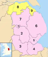 | Region | Divided between East Midlands & Yorkshire and the Humber |