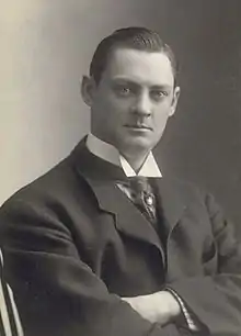 In 1906, after a series of disappointing appearances in plays, Barrymore and his first wife, the actress Doris Rankin, left their stage careers and travelled to Paris, where he trained as an artist. Lionel and Doris were in Paris in 1908 where their first baby, Ethel, was born. Lionel confirms in his autobiography, We Barrymores, that he and Doris were in France when Bleriot flew the English Channel on July 25, 1909. He did not achieve success as a painter, and in 1909 he returned to the US.[14][15] In December of that year, he returned to the stage in The Fires of Fate, in Chicago, but left the production later that month after suffering an attack of nerves about the forthcoming New York opening. The producers gave appendicitis as the reason for his sudden departure.[12] Nevertheless, he was soon back on Broadway in The Jail Bird in 1910 and continued his stage career with several more plays. He also joined his family troupe, from 1910, in their vaudeville act, where he was happy not to worry as much about memorizing lines.[16]