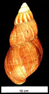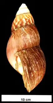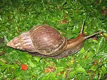 Lissachatina fulica is a species of large land snail that belongs in the subfamily Achatininae of the family Achatinidae.[1] It is also known as the Giant African land snail.[2] It shares the common name "giant African snail" with other species of snails such as Achatina achatina and Archachatina marginata. This snail species has been considered a significant cause of pest issues around the world. Internationally, it is the most frequently occurring invasive species of snail.[3]