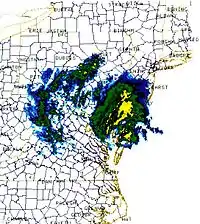 - September 19, 2004 – The remnants of Hurricane Ivan drop up to 3.83 in (97 mm) of rainfall, particularly in western areas.[2] The system also results in several tornadoes, one of which is reported to have killed an elderly woman and her daughter when a tree fell on their home in Cecil County.[71][72]