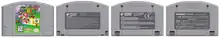 The Nintendo 64 home video game console's library of games were primarily released in a plastic ROM cartridge called the Game Pak. This strategic choice of high-performance but lower-capacity medium was met with some controversy compared to CD-ROM.[1][2][3][4] Two small indentations on the back of each cartridge allows it to connect or pass through the system's cartridge dustcover flaps.[5] All regions have the same connectors, and region-locked cartridges will fit into the other regions' systems by using a cartridge converter or by simply removing the cartridge's casing.[6] However, the systems are also equipped with lockout chips that will only allow them to play their appropriate games. Both Japanese and North American systems have the same NTSC lockout, and Europe has a PAL lockout. A bypass device such as the N64 Passport or the Datel Action Replay can be used to play import games, but a few require an additional boot code.[7]