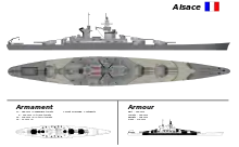 By the mid-1930s, the French again embarked on a naval construction program to counter the German and Italian fleets, resulting in the two Dunkerque-class battleships and fourRichelieu-class battleships; of the four Richelieus that were planned, two were cancelled by the start of World War II, and only one was completed in time to see action during the war. A final design, the Alsace class, was authorized in 1940 after the war began but were cancelled following France's defeat in the Battle of France. The two Dunkerques saw limited action during the war, with Dunkerque being sunk during the British attack on Mers-el-Kébir to prevent her from being seized by the Germans. Bretagne and Provence were also sunk there, and the third member of the class, Lorraine, was seized by the British and turned over to the Free French Naval Forces. Refloated and returned to Toulon, Dunkerque and Provence were later scuttled there with the former's sister ship Strasbourg when the French intentionally scuttled the fleet to prevent German soldiers from capturing the vessels. Richelieu meanwhile was overhauled in the United States and served with the Free French from 1943. Jean Bart, with only one main battery gun turret operational, briefly engaged United States forces during Operation Torch in November 1942, and was eventually completed in the late 1940s. Both she and Richelieu served as training ships before eventually being decommissioned in 1968.
