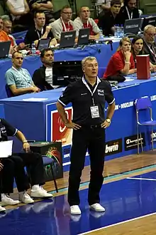 To assume the head coach position, American Dan Peterson, then in Italy, was invited but declined.[26] BC Žalgiris manager Raimundas Sargunas became coach, but problems with the players made him demoted to assistant, a job shared with Donnie Nelson and Spanish Javier Imbroda,[35] who was invited following Sabonis' suggestion of a Liga ACB veteran.[36][37] The eventual choice was Vladas Garastas, another Žalgiris veteran who was assistant in the 1988 Soviet squad.[38]