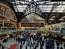 The redeveloped Liverpool Street was officially opened by Queen Elizabeth II on 5 December 1991.[82] At that time a giant departures board was installed above the concourse; it was one of the last remaining mechanical 'flapper' display boards at a British railway station until its replacement in November 2007.[83]