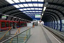 London City Airport is served by London City Airport DLR station, which is an elevated station adjoining the terminal building. The station is on a branch of the Docklands Light Railway, which links the airport to Canary Wharf and the City of London as well as to Stratford International and Woolwich Arsenal stations with interchanges to London Underground, London Overground, Elizabeth line, Abellio Greater Anglia, c2c, Thameslink and Southeastern High Speed train services.[56]