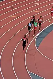 The stadium hosted both the opening and closing ceremonies at the 2012 Olympic Games.[81] During the Athletics events of the Olympic Games, David Rudisha broke his own world record for the 800 metres to become the first man to run the distance in under 1 minute 41 seconds.[82] In the 4 × 100 metres relay the team from Jamaica also broke their own world record from the 2011 World Championships by two-tenths of a second.[83] The United States women's 4 × 100 metres team beat the previous best set by East Germany in 1985, recording a time of 40.82 seconds to set a new world record.[84][85] Olympic records were set by Usain Bolt, who ran the second-fastest 100 metres,[86] Renaud Lavillenie in the Pole vault by 1 cm (0.39 inches),[87] Sally Pearson recorded a record time in the 100 metres hurdles and Tatyana Lysenko set a new mark in the Hammer.[88][89]