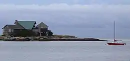 Long Island Sound was formed when the terminal moraine that dammed the waters of glacial Lake Connecticut failed, and sea water mixed with the lake's fresh waters. Prior to colonization, it's estimated that around 10,000 to 15,000 natives inhabited along Long Island Sound.[16] The first European to record the existence of Long Island Sound was the Dutch navigator Adriaen Block, who entered the sound from the East River in 1614.[17] The sound was known as The Devil's Belt in colonial times[18] and the reefs that run across the sound were known as Devil's Stepping Stones, from which Stepping Stones Lighthouse got its name.