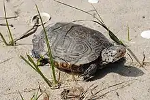 Other reptiles and amphibians found along the edges of the salt marshes and nearby bodies of water include the green frog, bullfrog, pickerel frog, spotted turtle, painted turtle, northern water snake, and common snapping turtle. On beaches and sandy areas there are Fowler's toads (which are also found inland but find sandy areas preferable), the American toad, and the hognose snake (which feeds on Fowler's toads).[11]