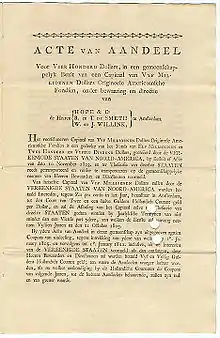 To pay for the land, the American government used a mix of sovereign bonds and the assumption of French debts. Earlier in 1803, Francis Baring and Company of London had become the U.S. government's official banking agent in London following the failure of Bird, Savage & Bird. Because of this favored position, the U.S. asked Barings to handle the transaction.[47] Barings had a close relationship with Hope & Co. of Amsterdam, and the two banking houses worked together to facilitate and underwrite the purchase.[48] Hopes brought to the transaction experience with issuing sovereign bonds and Barings brought its American connections.[47]