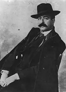 In 1892, together with Pietro Gori and Calabrese anarchist Giovanni Domanico, Galleani was delegated to represent the anarchists at the Genoa Workers' Congress, with the intention of obstructing the motions of the dominant reformist faction.[21] In opposition to the social democrats, led by Lombard lawyer Filippo Turati, an alliance was formed by the anarchists and the workerists, who both opposed political participation.[22] On August 14, a fierce argument broke out between the anarchist and socialist delegates, leading to two separate meetings being convened the following day.[23] Having finally forced the anarchists to split from the movement, Turati's social democratic majority established the new Italian Socialist Party (PSI), despite the objections of Galleani and his fellow delegates, whose own attempts at forming an anarchist party were unsuccessful.[24] The congress proved that Galleani's agitational campaign had ultimately failed to gain a mass following among the workers, leading to many Italian anarchists becoming disillusioned with the labor movement, which came under the direction of the PSI.[25]