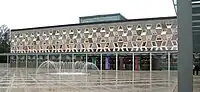 The Stade de Luxembourg, situated in Gasperich, southern Luxembourg City, is the country's national stadium and largest sports venue in the country with a capacity of 9,386 for sporting events, including football and rugby union, and 15,000 for concerts.[27] The largest indoor venue in the country is d'Coque, Kirchberg, north-eastern Luxembourg City, which has a capacity of 8,300. The arena is used for basketball, handball, gymnastics, and volleyball, including the final of the 2007 Women's European Volleyball Championship. D'Coque also includes an Olympic-size swimming pool.[28]
