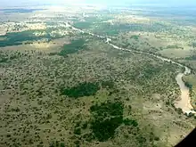 The total area under conservation in the Greater Maasai Mara ecosystem amounts to almost 1,510 km2 (580 sq mi).[1] It is the northernmost section of the Mara-Serengeti ecosystem, which covers some 25,000 km2 (9,700 sq mi) in Tanzania and Kenya. It is bounded by the Serengeti Park to the south, the Siria / Oloololo escarpment to the west, and Maasai pastoral ranches to the north, east and west. Rainfall in the ecosystem increases markedly along a southeast–northwest gradient, varies in space and time, and is markedly bimodal. The Sand, Talek River and Mara River are the major rivers draining the reserve. Shrubs and trees fringe most drainage lines and cover hillslopes and hilltops.