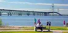 During the summer months, the Upper Peninsula and the Mackinac Bridge have become a major tourist destination.[57] In addition to visitors to Mackinac Island, the bridge has attracted interest from a diverse group of tourists including bridge enthusiasts, bird-watchers, and photographers.[58] The Straits area is a popular sailing destination for boats of all types, which make it easier to get a closer view to the underlying structure of the bridge.