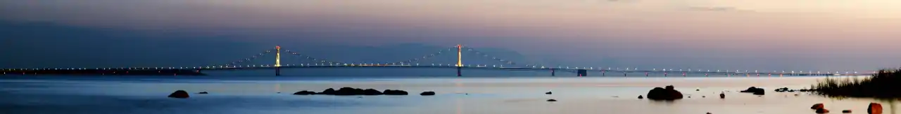 The bridge opened on November 1, 1957,[10] connecting two peninsulas linked for decades by ferries. At the time, the bridge was formally dedicated as the "world's longest suspension bridge between anchorages", allowing a superlative comparison to the Golden Gate Bridge, which has a longer center span between towers, and the San Francisco–Oakland Bay Bridge, which has an anchorage in the middle.