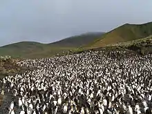 Between 1810 and 1919, seals and then penguins were hunted for their oil almost to the point of extinction.[6] Sealers' relics include iron try pots, casks, hut ruins, graves and inscriptions. During that time, 144 vessel visits are recorded, 12 of which ended in shipwreck.[9] The conditions on the island and the surrounding seas were considered so harsh that a plan to use it as a penal settlement was rejected.[7]
