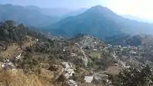 Unlike another film noir, which was mostly filmed indoors, Roy decided to film Madhumati outdoors and at a hill station. It had a six-week schedule at a location in Ranikhet, Nainital.[4] Some scenes were filmed in Ghorakhal near Nainital.[8] When the negatives were developed, most of the footage was found to be fogged. Since a reshoot in far-away Uttarakhand was not possible, sets were created near Vaitarna Dam, Igatpuri.[4][10] The art direction team, led by Sudhendu Roy, created fake pine trees, which were planted to match the location in Nainital.[4] A large part of the film was filmed in Aarey Milk Colony, a small forested area in Mumbai. A scene in which Dilip Kumar looks for Vyjayanthimala in the woods was filmed in Igatpuri.[4] The foggy effect was recreated using gas bombs.[4] The costumes of the film were designed by Yadugiri Devi, Vyjayanthimala's grandmother; these were later approved by the art director Sudhendu Roy. Vyjayanthimala wore silver jewelry from her collection in the film.[11] The actress had also hurt her foot while dancing.[12][13]