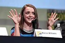 Williams received critical praise and recognition for her portrayal of Arya in the show.[42][43] In 2012, the second year of her professional acting career, she was submitted in the category of Outstanding Supporting Actress for the 64th Primetime Emmy Awards by HBO, but did not make the nomination shortlist.[44] She was awarded both the 2012 Portal Award for Best Young Actor and the Portal Award for Best Supporting Actress – Television (at 15 years, the youngest actress to achieve this).[1] In November 2013, she received the BBC Radio 1 Teen Award for Best British Actor.[45][46] August 2014 she was presented with "Best Supporting Actress, Drama" in the EWwy Awards.[47] In 2015, she was awarded the Empire Hero Award, and the Saturn Award for Best Performance by a Young Actor in a Television Series.[48][49][50] In 2016 she reached the nomination short list for a Primetime Emmy Award for Outstanding Supporting Actress in a Drama Series.[51] In 2018 Williams was nominated for the Best Performance in a Show in the MTV Movie & TV Awards. In 2019 her performance in the final season of the drama resulted in her again receiving the Saturn Award for Best Performance by a Younger Actor in a Television Series, as well as nominations for the Best Hero and Best Fight in the MTV Movie & TV Awards and People's Choice Awards for The Female TV Star and The Drama TV Star.[52][53][54][55] In the same year Williams achieved her second nomination for a Primetime Emmy Award for Outstanding Supporting Actress in a Drama Series, Daniel D'Addario from Variety said that Williams "entered the show as a child with minimal experience, but swiftly proved herself a very gifted performer... Millions watched her grow into her talents – and a fitting end to her very unusual journey through her first role" would be for her to win an Emmy.[43]