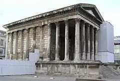 The Maison carrée (French pronunciation: [mɛzɔ̃ kaʁe]; French for "square house") is an ancient Roman temple in Nîmes, southern France; it is one of the best-preserved Roman temples to survive in the territory of the former Roman Empire. It is a mid-sized Augustan provincial temple of the Imperial cult, a caesareum.