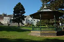 King Charles I attempted to enclose and sell two thirds of the Chase, as part of a wider attempt to raise revenue for the Crown from the sale of Royal forests. The attempts to enclose the lands, used as commons, resulted in riots, part of a pattern of disturbances that ran across the disafforested royal lands.[38] In 1633, the Court of Exchequer Chamber decreed the rights of the public to two thirds of the lands on the Malvern Hills, and rights of Sir Cornelius Vermuyden and his descendants, and the Crown, to one third (quoted in the preamble to the Malvern Hills Act of 1884).[39] By that time, Malvern had become an established community and the major settlement in the Malvern Chase.[35]