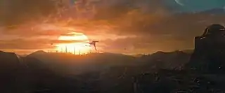 For the sequences involving the terraforming of the city Metropolis, Double Negative handled the visual effects for the sequence. In order to construct a Metropolis that seemed convincing and realistic, Double Negative utilized Esri's CityEngine to help procedurally deliver the city. According to Ged Wright, a Double Negative visual effects supervisor, it was a much more sci-fi based role, "so we took what they had done and extended it a great deal. The work we were doing was based around the Downtowns for New York, L.A. and Chicago and that gave us the building volumes for heights. We'd skin those volumes with kit parts, but most of it then had to fall down! So we had to rig it for destruction and use it for other aspects of the work as well."[113]