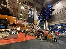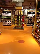 After many delays, including the discovery of a creek running through the basement and a time capsule behind the 1931 cornerstone on Carlton Street, the new store opened on November 30, 2011. It incorporated many elements of Maple Leaf Gardens including original seats, a red dot on the ground floor marking the original centre ice location, the recreation of an original mural by the checkouts and a giant maple leaf made out of old seats from the arena among numerous other things. The centre also includes underground parking, a Joe Fresh, an LCBO liquor store and a medical clinic. It is the chain's flagship location.[54] The transformation would win a World Architecture News Retail and Leisure Interiors Award in the "Retail outlets over 200 square metres (2,200 sq ft)" category.[55]